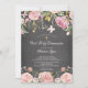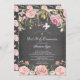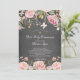 Beautiful pink floral with gold leaves first holy communion invitation set on a modern chalkboard background with a coordinating floral back for an extra special touch.
