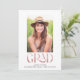 Modern Blush Pink Foil Typography Graduation Photo Graduation Announcement featuring elegant, trendy text along with a full sized photo on the front. All text and colours are fully customisable - perfect for your simple modern graduation announcements. Please contact us at cedarandstring@gmail.com if you need assistance with the design or matching products.