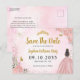 Modern Blush Pink Gold Quinceanera Save the Date Postcard
