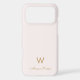 A modern, elegant monogram design with gold handwritten minimalist script typography and sans serif block typography on an elegant pale pastel blush pink background. The monogram and name can be easily personalized.