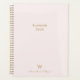 Modern Blush Pink Gold Script Monogram Planner. A modern, elegant monogram design with gold handwritten minimalist script typography and sans serif block typography on an elegant pale pastel blush pink background. The monogram and name can be easily personalised.