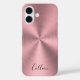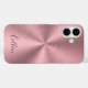 Modern Blush Pink Metal Monogrammed iPhone 16 Case