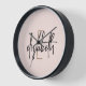 Decorate your home in style with this chic modern monogram blush pink, black and gold wall clock. Personalise the clock with your name or initials for a unique and meaningful touch. The stylish script font will add a modern and sophisticated flair to any wall, and is a great way to show off your personal style. Whether you hang it in your living room, kitchen, or office, this clock is sure to make a lasting impression.