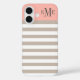 Modern Blush Pink Neutral Stripes Custom Monogram Case-Mate iPhone Case