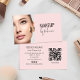 Modern Blush Pink Script Font QR Code Photo Makeup Business Card