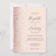 The left-hand edge of this elegant modern wedding invitation features a rose gold faux glitter design. The customisable text combines charcoal grey handwriting, copperplate and italic fonts on a blush pink background. The reverse side provides space for wedding details on a solid blush background, along with a QR code guests can scan to visit your website and RSVP, which saves the cost of printing and mailing separate RSVP cards.