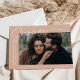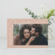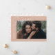 Share the news of your surprise engagement with these elegant photo engagement announcements. The design features the phrase "Surprise, we got engaged!" in a trendy white script and modern lettering on a blush background. Your engagement photo is featured in the centre-right part of the design with your names and engagement date displayed on the left. Personalise the surprise engagement announcement by adding additional details below such as wedding city/state, wedding website, etc. The announcement reverses to display a blush foliage pattern on a white background.