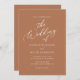Invite friends and family to share in your wedding celebration with this simple wedding invitation, featuring warm colours and a beautiful script on the front, and a burnt orange background.