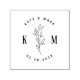 Custom-designed wedding monogram stamp featuring modern bohemian arch shape with hand drawing style foliage design.