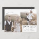 This modern boho arch 2 photo save the date card is perfect for a simple wedding. The bohemian black and white design features unique industrial lettering typography with minimalist vintage style. Personalise the front of the card with 2 photos, your names, date and wedding location.