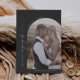 This modern boho arch grey photo engagement announcement makes the perfect simple announcement card. The bohemian dark grey design features unique industrial lettering typography with minimalist vintage style. Personalise the front of the card with a photo, and your names.