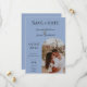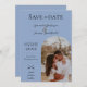 Announce your wedding day with this Modern Boho Arch Photo Save the Date Announcement in dusty blue. Save the Date design features an arch style photo placement for the happy couple with elegant and modern text design. Add a photos and wedding details to customise.