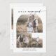 This modern boho arch proposal photo collage engagement announcement card makes the perfect simple announcement card. The bohemian black and white design features unique industrial lettering typography with minimalist chic style. Personalise the front of the card with 3 photos and your names. Include an additional photo, and your proposal story or announcement message on the back of the card.