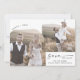 This modern boho arch QR code 3 photo save the date card is perfect for a simple wedding. The bohemian black and white design features unique industrial lettering typography with minimalist vintage style. Personalise the front of the card with 2 photos, your names, date and wedding location. Include an additional photo, and a QR code link to your wedding website for more info on the back of the card.