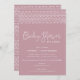 This trendy boho baby shower invitation features a cool mud cloth inspired tribal border with modern minimalist typography. Shown on a dusty mauve pink background or use the design tools to customise in any colours for baby boy or baby girl. Add your baby shower details or customise to suit your event.