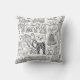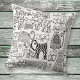 A boho modern black and white whimsical cats decorative pattern throw pillow by Julie Nicholls©.