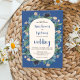 Modern Boho blue floral script arch wedding invitation featuring pretty hand painted warm hues of blue colour of the year and dark greenery with a round mask. Perfect for fall boho themed wedding party. With a modern script typography.