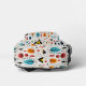 There's a fun boho style leaves pattern on this bag that is attractive for both kids and adults. Colours used include blue, gold, orange and dark navy on a white background. At the centre is your triple monogram in black, which is placed on an oval banner lined in black and gold. Colourful!