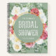 Decorative Boho Bridal Shower Gift List Notebook featuring custom bride's name template and bridal shower date. A whimsical and elegant bridal shower decor accessory that fits with the bohemian bridal shower theme. The design displays a feminine and stylish floral bouquet made up of muted red and white roses, botanical greenery, and white bridal shower typography.