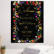 Modern boho bright wild flowers bridal welcome bohemian bridal shower welcome sign with real gold foil. Featuring pink, red, green, and purple hues botanical flowers inspired by wildflowers and watercolor rustic gardens with subtle greenery and modern boho script typography on dark background.