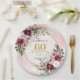 Modern Boho Burgundy Greenery Gold 60th Birthday Paper Plate
