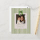 A festive holiday card you can personalise with your own photo.The design includes elegant vertical green stripes on a white background, a decorative green ribbon bow at the top, and the greeting "Happy Holidays" in green text, followed by the name of your family in smaller font. The layout is simple yet elegant, perfect for sending seasonal greetings.