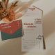 All-in-one card includes wedding invitation, details, an engagement photo, and a self addressed RSVP card that your guests rip off and mail back to you. Personalise the cover with your names and wedding date. This "roomy" invitation is a great way to give your guests additional information on the wedding. These cards can list the festivities surrounding your wedding weekend, such as welcome cocktails, after-parties, and morning after brunches. If you’re planning a destination wedding, all-in-one invitations are a great way to provide information to your guests about local hot spots and area attractions to help them make the most of their travel plans.
