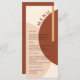 A modern and elegant wedding menu giving a boho 70s rustic vibe with its abstract circle and rectangle shapes pattern in monochromatic earth-toned hues of terracotta, burnt orange and beige. Personalise the wedding menu.