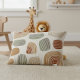 Complete your young explorer's sanctuary with this sophisticated abstract accent pillow. This design features a rhythmic pattern of organic, rounded shapes in a calming palette of terracotta, sage green, and warm tan. Detailed with hand-drawn lines and set against a soft, linen-textured background, it provides a contemporary and artistic flair to any space. Perfect for nesting into a cozy corner or layering with safari-themed bedding, this durable pillow adds both comfort and high-end style to a young child's modern bedroom. Part of our coordinated 'Kid's Safari Decor' collection. Note: design adapted from generative content.