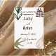 Modern minimalist engagement party invitation with abstract palm leaf design.