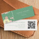 These QR code contemporary business cards with colourful floral background in green, pink and yellow, are stylish and playful. The design includes a modern set of fonts in matching green and ivory background at the back. Make a lasting impression with these playful and chic retro vibe cards.