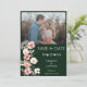 Modern Boho Floral Photo | Emerald Green Save The Date