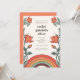 This Bat Mitzvah invitation features a modern boho floral design with a soft rainbow arch in coral and sage tones. The folk-inspired illustration creates a warm, artistic feel that pairs beautifully with contemporary celebrations. A clean layout highlights her name while the bold border adds personality and charm. Ideal for temple services, luncheons, and festive gatherings.