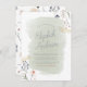 This elegant design features a hand-painted pastel green watercolor brushstroke overlay. There are simple floral arrangements in two of the corners, accented by faux gold dustings. The bride's name appears in dusty blue handwriting calligraphy. The shower details appear below. Cards reverse to a boho pattern of the flowers and greenery on the front. Click on "Personalise this template" to change the text and make your own shower invites. This design can also be customised for brunch, brunch and bubbly, bridal luncheon, and tea parties. View the collection link on this page or visit our store for more designs. Feel free to contact me if you need any help with customisation!
