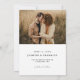 Modern and minimalist design features arched boho frame photo against a white background with a slim handwritten calligraphy script, and a 2-photo display. Easily customise your important information along with your favourite photos on front and back. Ideal for any modern wedding theme.