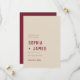 Modern Save the Date Card Template in dark berry red and cream white with strong clean typography and a boho arch on the back of the card. Customise this Wedding Save the Date Card to fit your needs, change text elements and colours if you like.