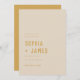 Modern Save the Date Card Template in golden beige and cream with strong clean typography and a boho arch on the back of the card. Customise this Wedding Save the Date Card to fit your needs, change text elements and colours if you like.