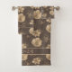 Chic Boho Gold Foil Floral Pattern Bath Towel Set featuring a romantic, faux gold foil floral pattern on a warm chocolate brown background. Add your name or monogram for a beautiful, personalised design. Perfect for your hippie boho aesthetic. Please contact us at cedarandstring@gmail.com if you need assistance with the design or matching products.