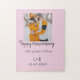 Modern boho happy anniversary add name date orange jigsaw puzzle