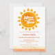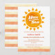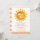 Cute simple minimalist " here comes the son" baby shower invitation, design feature with watercolor burnt orange sun and sunshine decor with yellow and orange watercolor stripes feel like the sand beach desert. Perfect for baby boy baby shower sunshine theme. You can customise text and colour.