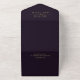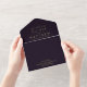 Modern stylish dark wedding card Purple with gold dust on with a gold ink pour effect (the gold is a digital effect, not real foil!) and modern calligraphy. Classy and elegant, simple and modern invitation. Gold ink pour effect (the gold is a digital effect, not real foil!) and modern calligraphy.