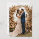 A simple script boho minimalist script typography on an earthy mocha brown wedding invitation, featuring your wedding photo on the back. Replace the sample photo with your own posed wedding photo. Available in print, as a digital download, or both.