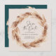 Modern bohemian natural pampas grass wedding save the date invitation. Stunning elegant script text and on trend botanical foliage in contemporary natural beige, terracotta, black and teal colorway.