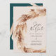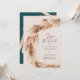 Modern bohemian natural pampas grass wedding save the date invitation. Stunning elegant script text and on trend botanical foliage in a contemporary teal, black, terracotta and natural beige colorway.