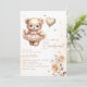 Modern Boho Teddy Bear Balloon Girl Baby Shower Invitation