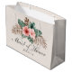 Elegant maid of honour large gift bag featuring dusty pink watercolor flowers and tropical leaves on a cream coloured background.