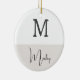 Celebrate the holiday season with this modern boho with name Christmas ceramic ornament. The unique and editable script gives the design a chic yet elegant touch. Its simple black, white, and beige design embodies a classic and whimsical feel, perfect for the winter season. The minimal bohemian festive designer font adds creativity and charm, while the clean and basic neutral layout enhances its contemporary appeal. Capture the essence of December with this delightful and beautifully crafted ornament.