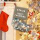 Modern Bokeh Lights and Fonts Small Christmas Stocking. Trendy white font.