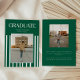 Modern Bold 2-Photo Green Striped Graduation Announcement Card. A minimalistic and modern, forest green graduation announcement card, designed with a striped pattern on the front. Customize with 2 graduation photos, graduate's name, year of graduation, and custom message on the back.
