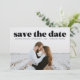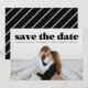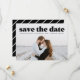 Announce your upcoming wedding with our stylish Modern Bold Black Typography save the date photo cards. The modern save the date cards display your engagement photo with "save the date" in a bold black text overlay. Personalise the card by adding your names, wedding date, and wedding location. The card reverses to a customisable black and white striped background.